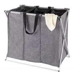 WENKO Panier à linge Trio Top – Polyester / Aluminium – Gris