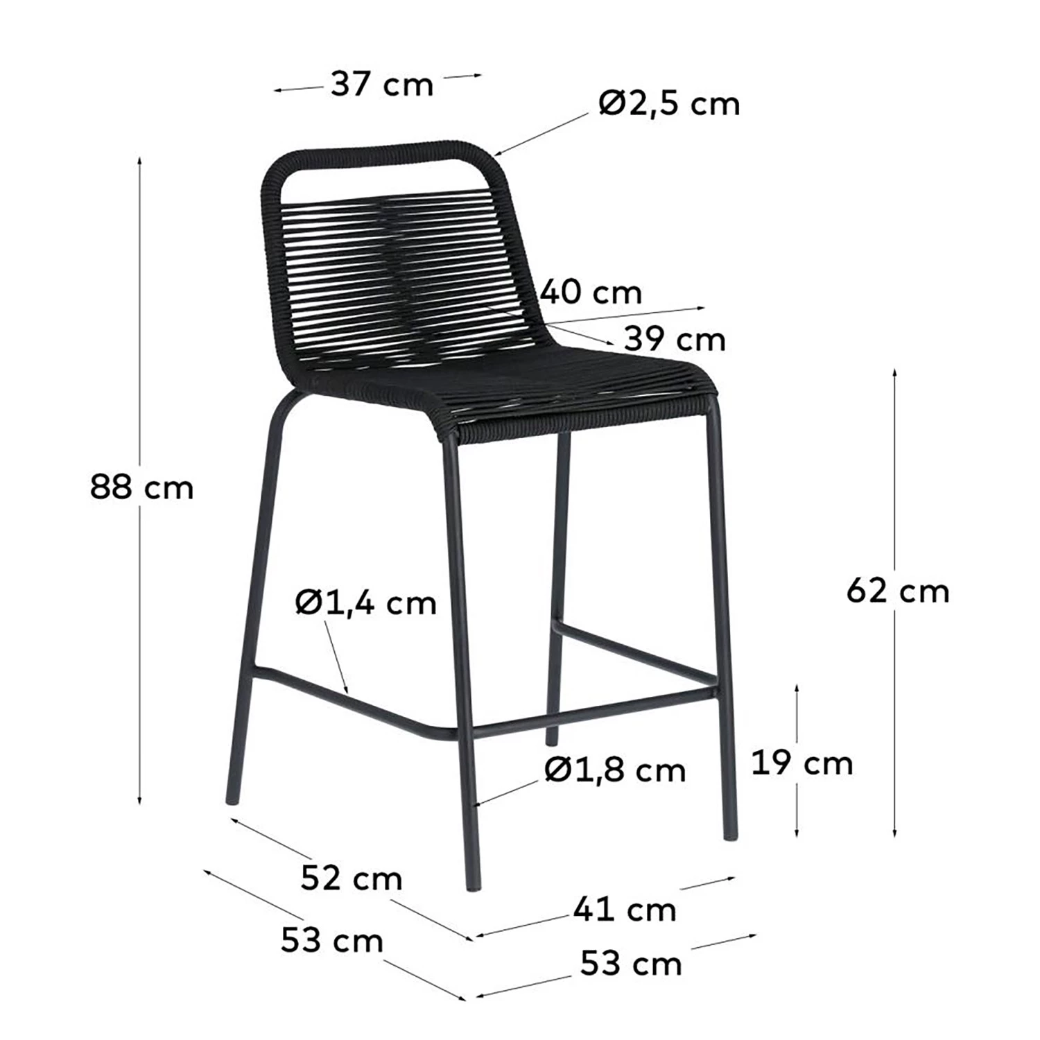 - Hauteur d’assise : 62 cm
