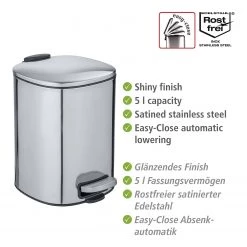 WENKO Poubelle de salle bains Otranto – 3 Litres – Acier inoxydable