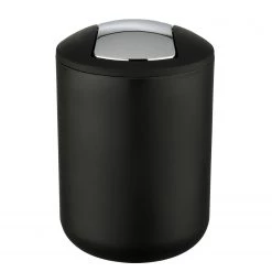 WENKO Poubelle salle de bain Leman – Acier inoxydable / Polypropylène – Noir brillant