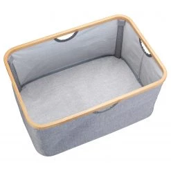 WENKO Panier à linge Bahari – Bambou / Polyester – Marron / Gris