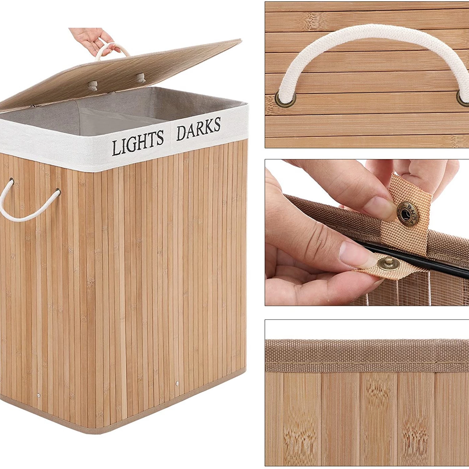 - Bambou / Fer / MDF (panneau de fibres de bois à moyenne densité) / Tissu